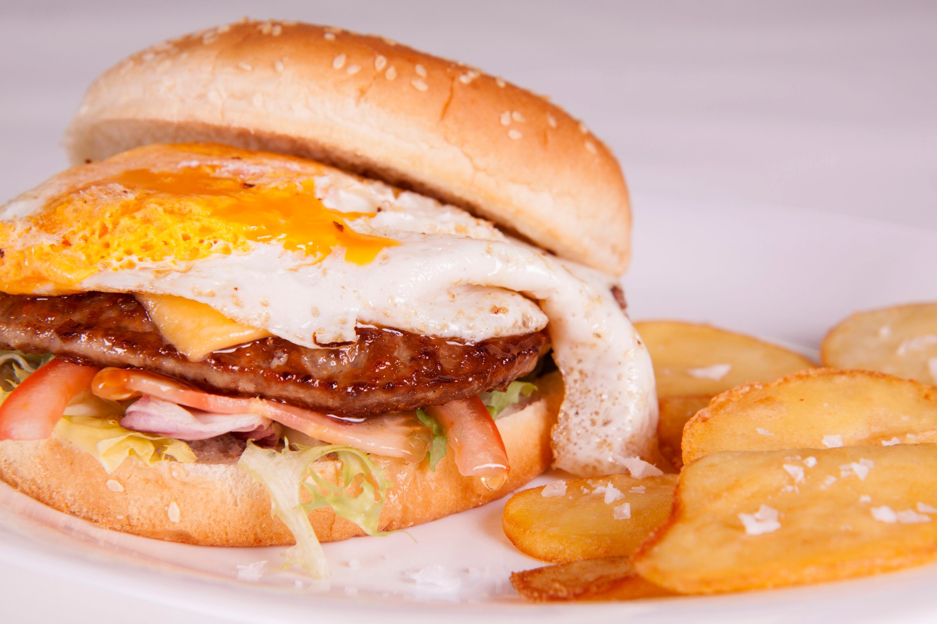 4. Huevo, bacon, queso, tomate, cebolla, lechuga